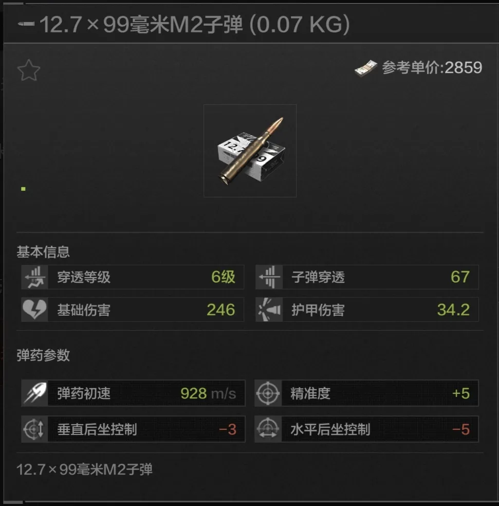 游戏中的12.7x99mm M2子弹拥有着远超一般子弹的数据