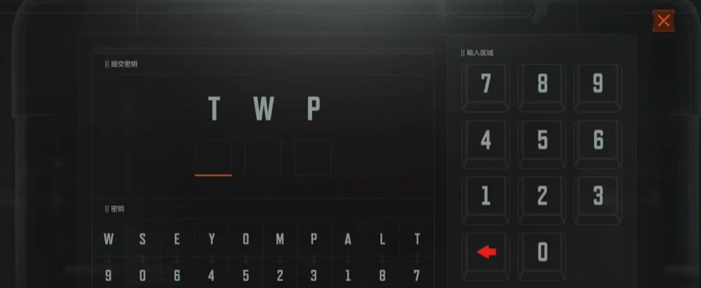 获取密码本后来到控电室黑门门口进行交互,对照左下方密钥对应表输入密码即可开启撤离点~