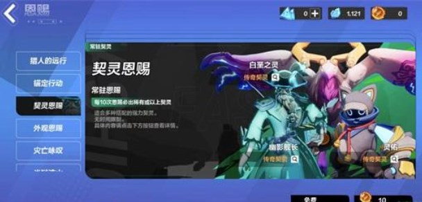常驻恩赐。每10次恩赐必出稀有或以上契灵,适合多种搭配的强力契灵。无时间限制。