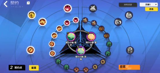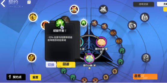 当玩家八级时会开启契约功能并获得1点契约点数,此后每提升4级便会获得1点契约点数,这些契约点数可以用来点亮契约板,从而获得对应的增益效果。目前通过升级总归可以获得24点契约点数。
