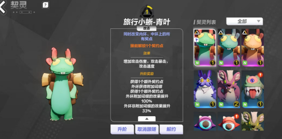 当然契灵的效果远不止契点,安装不同的契灵当前区域的技能效果也会有所不同,稀有度更高的契灵会提供更多的技能增益。