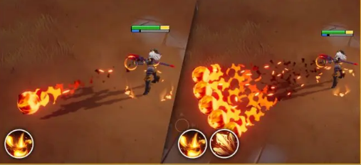 “火炬无限”的战斗并非使用多个技能打一轮循环输出的模式,而是强调对单独某一个技能进行改变和创造,主要以一个”0CD“没有冷却时间技能来进行核心输出。游戏中的技能可以通过串联结合,实现技能效果和形态的改变。