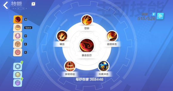 连接技能:碾压、怒斩、连续攻击、元素冲击、电能超载。