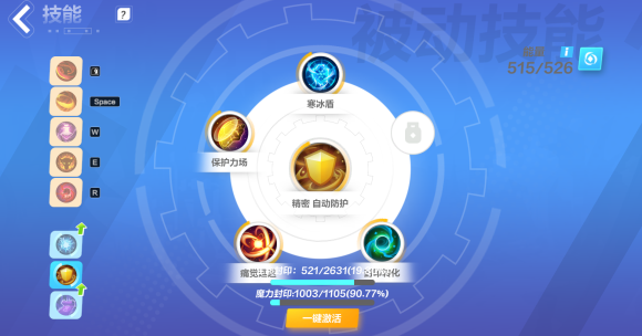 连接技能:寒冰盾、保护立场、痛觉延迟,封印转化。