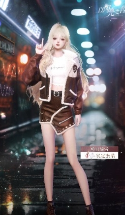 4、小编觉得这个套装还是不错的,整体是一种机车风格,颜色主要是棕色搭配白色内搭,有一种秋天的感觉。