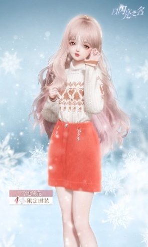 4、该时装属于四星限定,整体主要是米色毛衣搭配橘色毛绒半身裙,整体十分有冬日的氛围感。