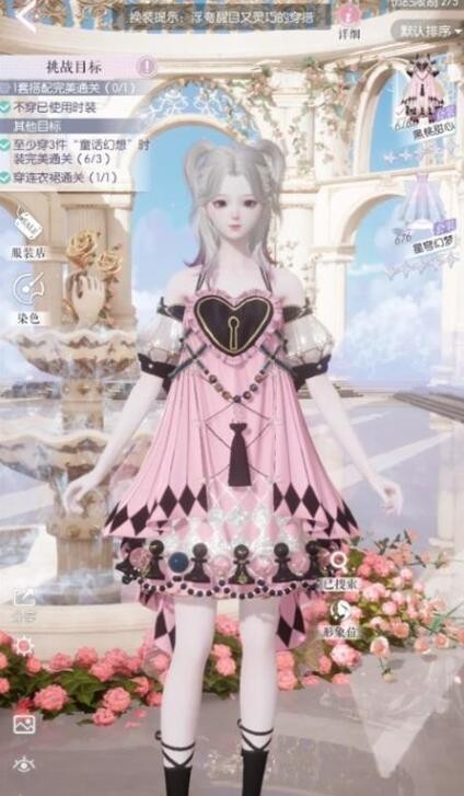 5、通关条件:3套搭配完美通关、至少穿3件“童话幻想”时装完美通关、穿连衣裙通关。
