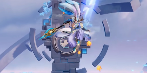 向前挥动长戟,挑飞对手,长按技能可向摇杆方向驭风前行一段。