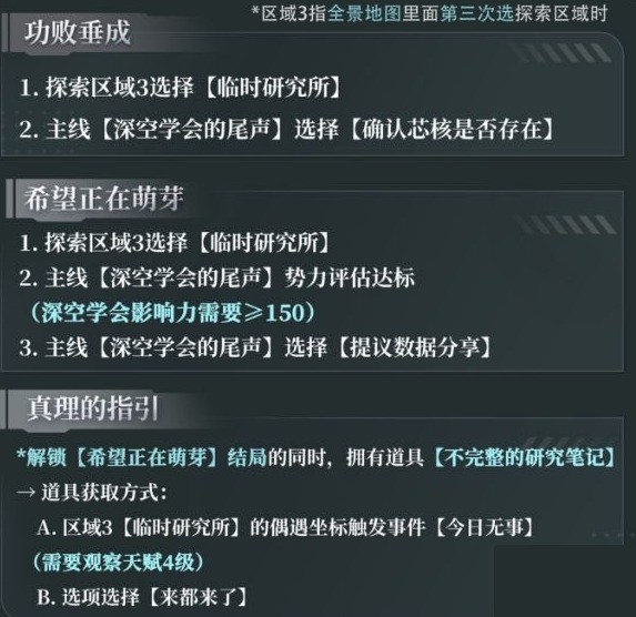 3、在【探索区域三(即选择势力之前)】之前的任何选项都不会影响结局的走向!