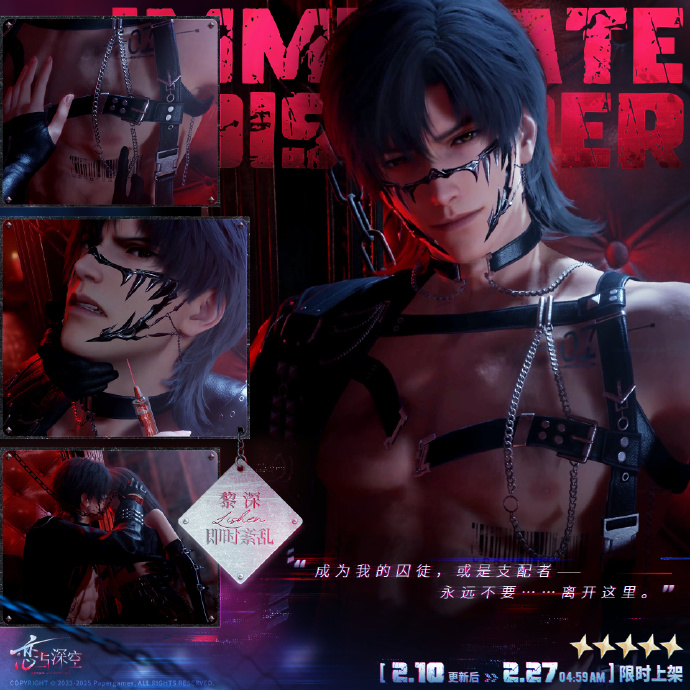 他的监狱交织着层层暗潮,秘密与罪责将你们牵缠在一起。你会选择留下吗?任他挣脱控制、将你咬伤,再去寻求渴望中的新生。《恋与深空》全新五星互动思念「黎深·即时紊乱」内容一览。