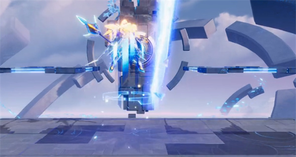 挥动长戟将敌人挑飞,并在地面激发能量裂隙。