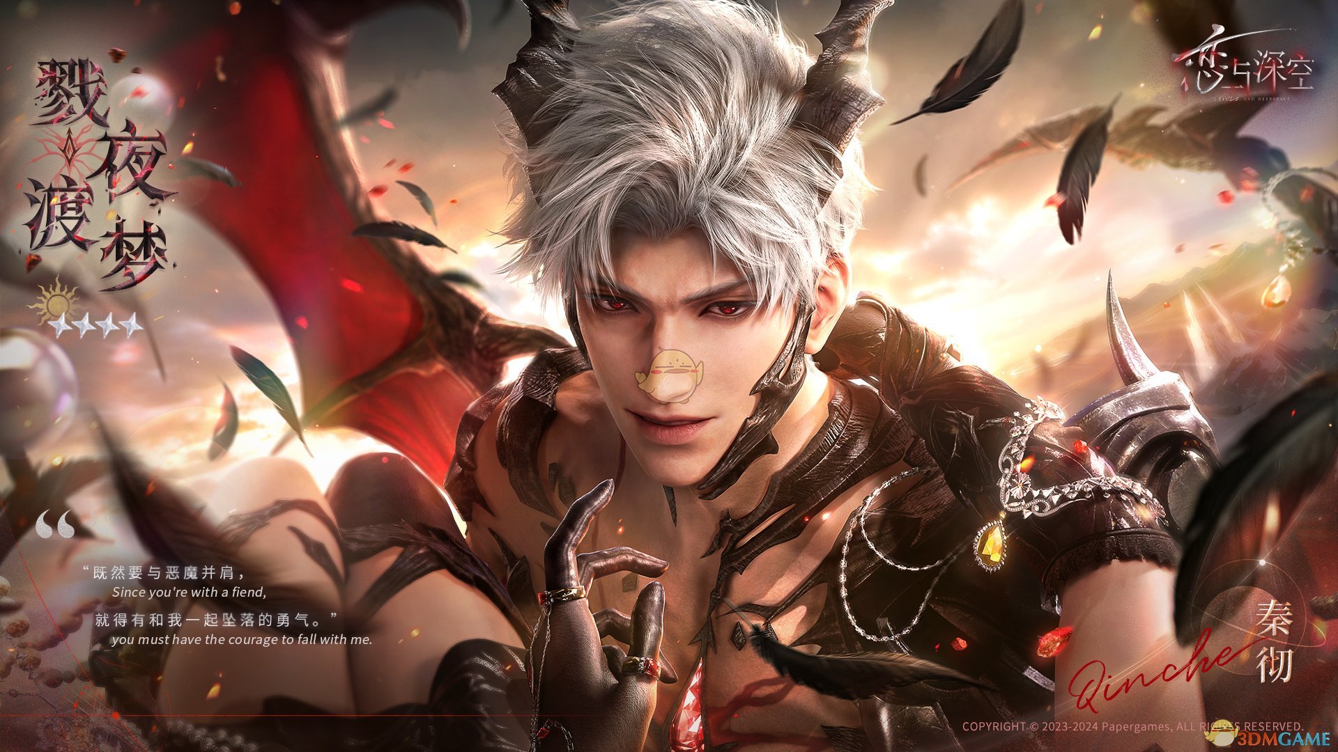 参与活动,即可免费获取四星日冕套装思念「秦彻·戮夜渡梦」、「秦彻·戮夜灼心」、三星思念「秦彻·混世」、「深空许愿券·限时*10」、「钻石*500」、双人拍照动作、限定称号等缤纷奖励!