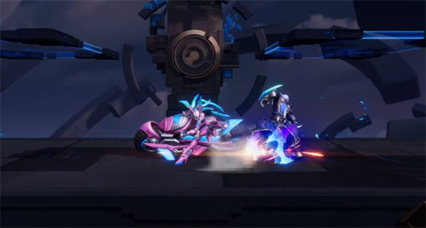 武器变形摩托向前行驶,命中敌人进行击飞,再次使用技能可以发射激光。