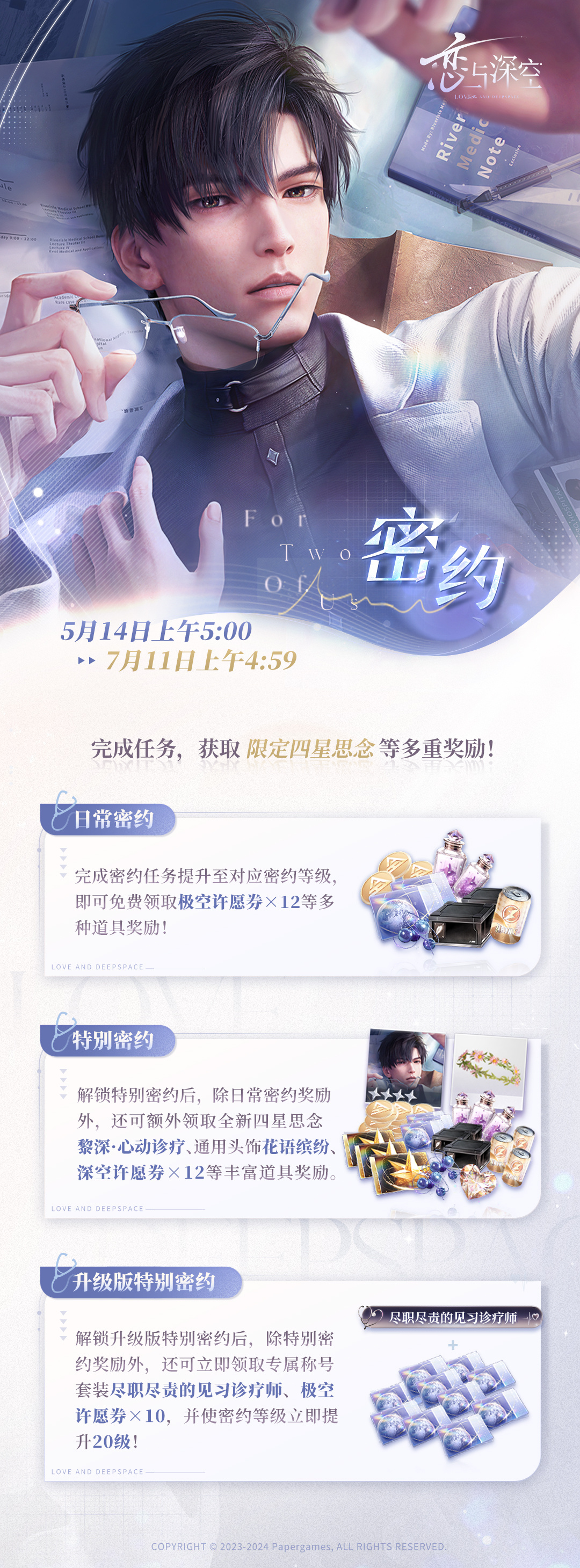 以上就是小编整理带来的恋与深空黎深心动诊疗密约活动介绍,更多相关游戏攻略,请关注手游网!