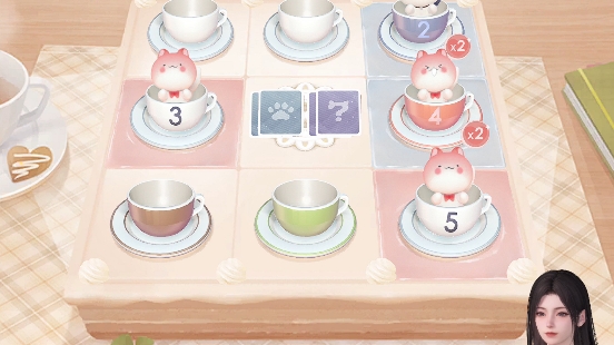 6、等到桌子上所有的杯子都放满了,谁的积分高,谁就赢了,每次喵喵牌三局,三局两胜制。