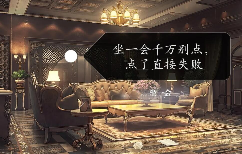 2、进入第二个房间后,沙发只能调查,千万别坐下。