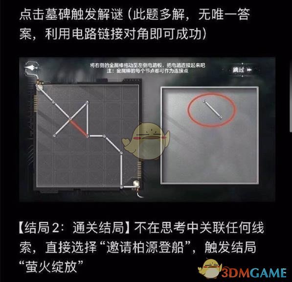 5、点击墓碑触发解密游戏,答案(不唯一)见下图。
