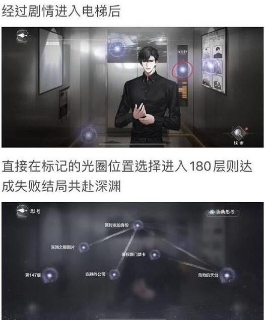 经过剧情进入电梯后,在电梯楼层按钮位置,选择进入180层达成失败结局—共赴深渊。