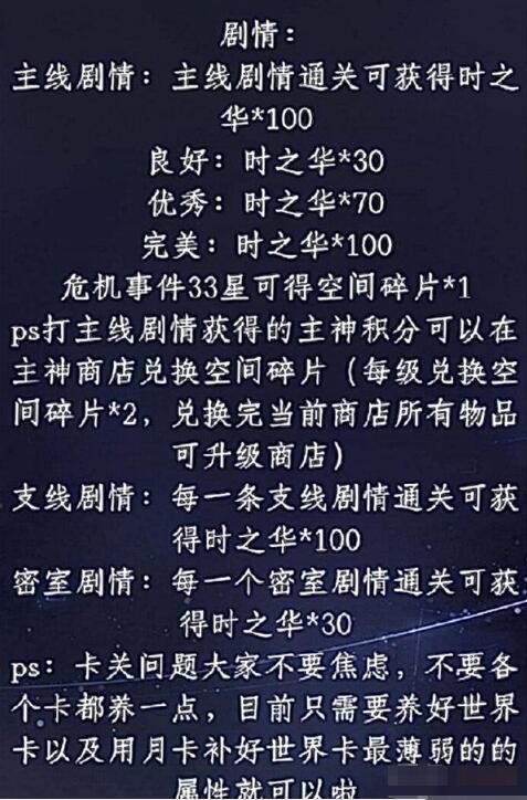 支线剧情:每一条支线剧情通关可获得时之华*100