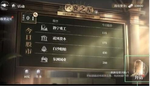 拜访“他”,与“他”互动,也将为你带来更多“资金”和情报信息!