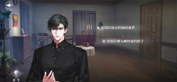 1、房间二获得银针,点击左下思考得结论【顾时夜对我别有所图?】。