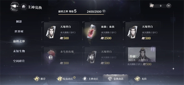 1、血族:崩塌之界商店5 级解锁血脉(2500影像),商店6级可解锁升阶材料「永生的玫瑰」(300影像)