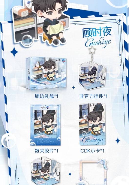 相应男主亚克力挂件、纸夹胶片、CDK小卡、防水贴纸等联动周边套组