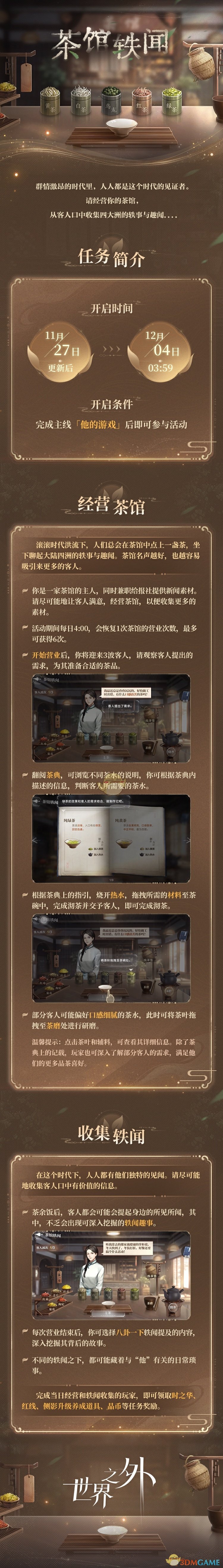 以上就是小编带来的《世界之外》茶馆轶闻活动介绍,更多相关游戏攻略,请关注这里下载站。