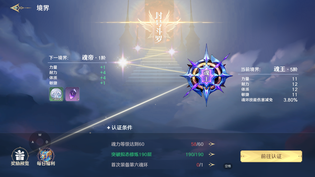 不过提升境界的等级也是需要大家达到认证条件的,一般情况下都是需要大家完成三个条件,一个是角色等级条件,一个是魂环获取条件,另外一个就是魂师证书获取条件,在认证任务都完成之后大家就可以前去认证,认证地点在武魂主殿,找到马修诺,交流之后提交道具注入魂力就可以认证成功啦。