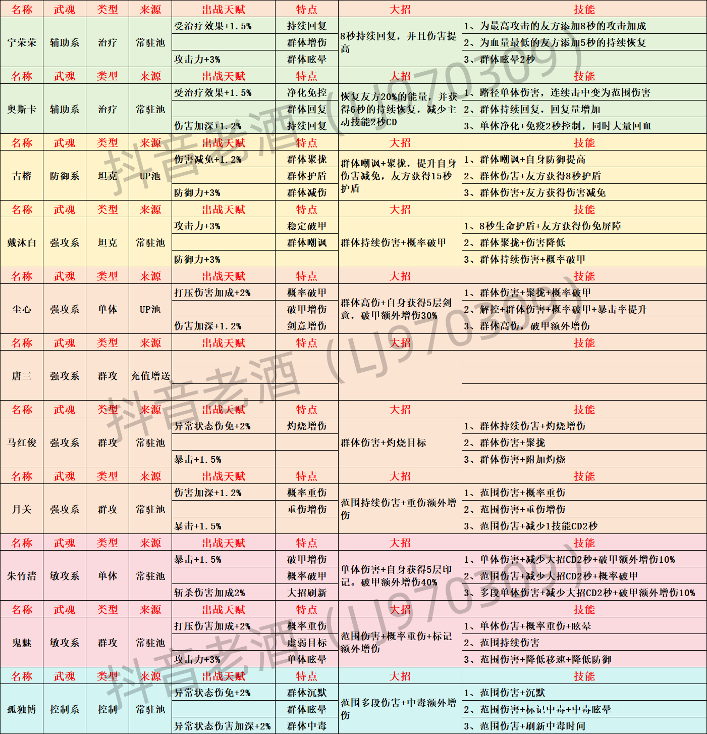 全部伙伴属性技能表
