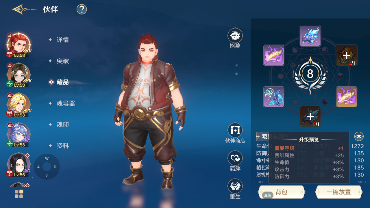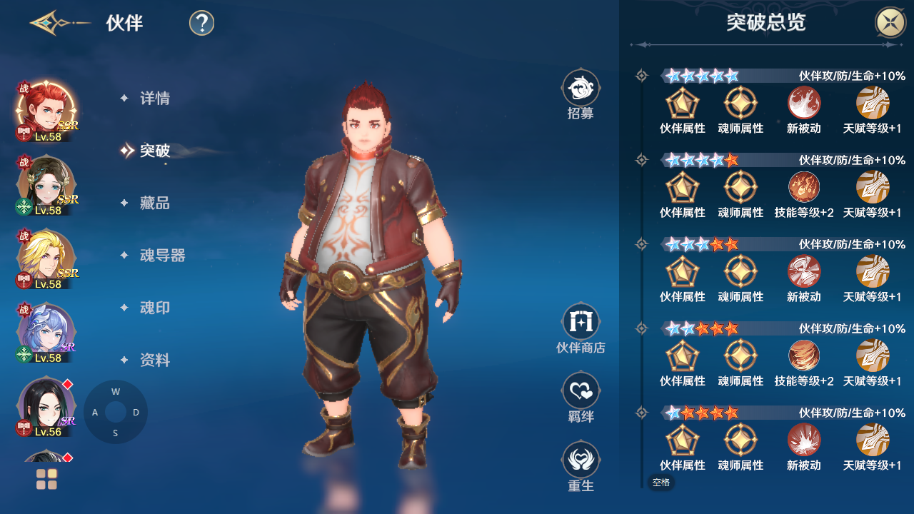 伙伴的战力和属性由等级+突破星级+藏品+魂导器+魂印决定