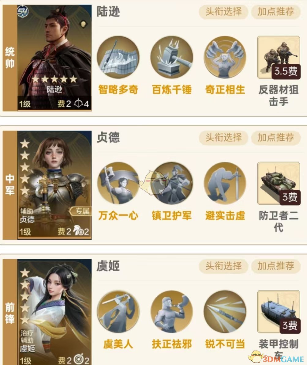 统帅陆逊、中军贞德,前锋虞姬,贞德必须开头衔,大家都S4赛季末期了虞大家姬的红度肯定不低,虞姬力竭可以有效克制一些爆发阵容,不过这里虞姬需要点一手敏捷保证出手比陆逊快优先释放扶正祛邪给陆逊提供数值的加成以打出更高的伤害