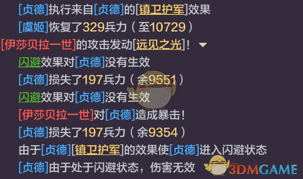 (2) 贞德携带镇卫护军和避实击虚:这两个技能可以让我们更好得克制爆发阵容,即使伊莎贝拉的普攻为1只能打我军前锋但是镇卫护军依旧可以让伊莎贝拉一世的普攻作用在贞德身上,这样前锋就不会被集火秒掉。