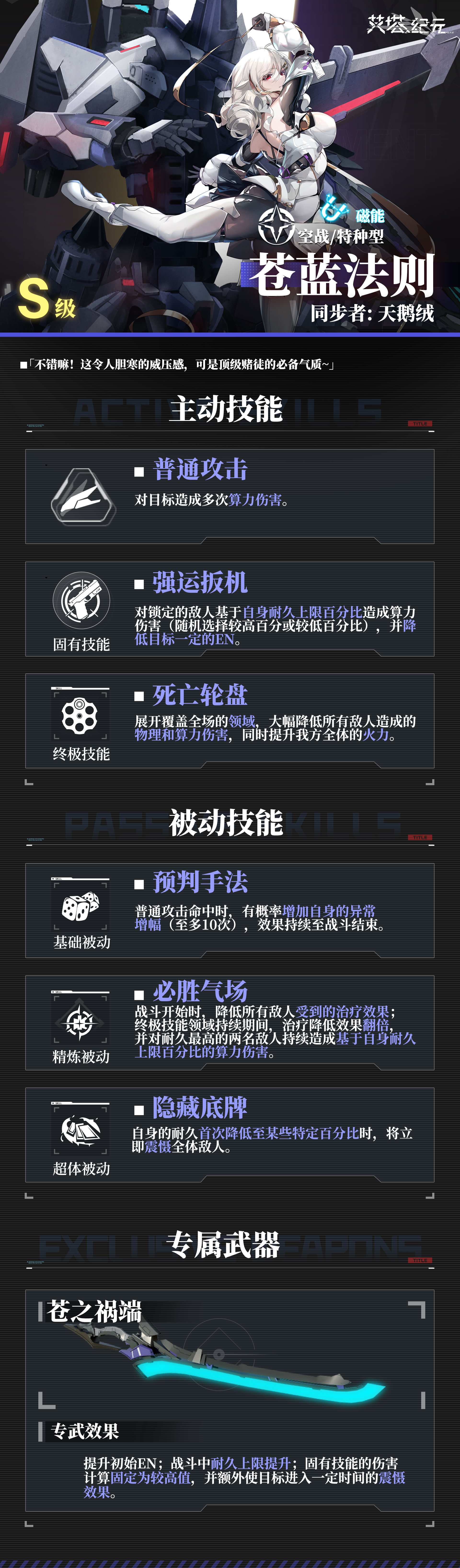 以上就是小编整理带来的《艾塔纪元》S型艾塔天鹅绒·金隼·苍蓝法则技能介绍一览,更多相关游戏攻略,请关注手游网!