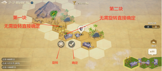 完成地块任务的同时,放置完所有地块即可通关(可旋转地块,但地块顺序不可逆)。
