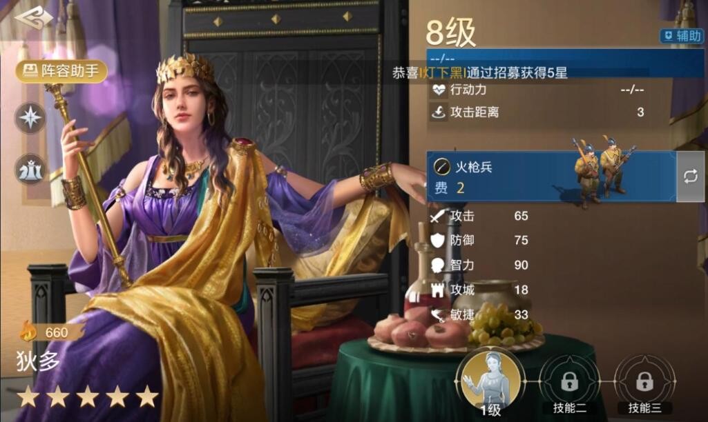 在战斗中以控制效果以及技能的强势为主,所以面板属性不算优秀,智力属性90算是尚可,其他属性就比较低了,这主要是因为狄多还是比较依赖技能,所以面板没有特别重要。