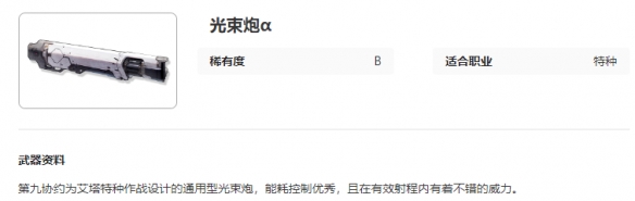 《艾塔纪元》光束炮α图鉴介绍,第九协约为艾塔特种作战设计的通用型光束炮,能耗控制优秀,且在有效射程内有着不错的威力,下面小编给大家带来《艾塔纪元》光束炮α图鉴介绍一览,有需要的小伙伴一起来看看吧。