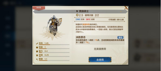 而英国专属的贵族骑士,其“决胜意志”对主动技能伤害增加的效果,更适合主动技能多的英雄搭配。