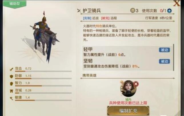 另外在铁器时代使用骑兵单位主动技能造成的伤害提升3%,工业时代使用骑兵单位主动技能造成的伤害提升5%。