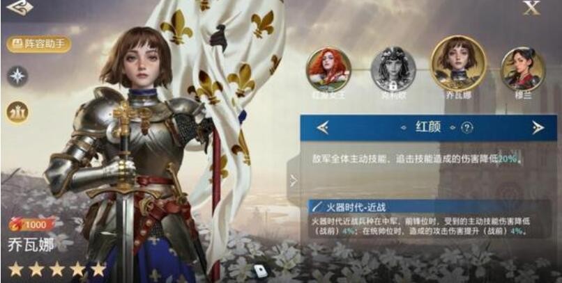 由于乔瓦娜的民族英雄羁绊三人擅长兵种都是骑兵,因此可以稳定获得兵种增益效果。在游戏中后期可以进一步提升伤害。是少有的T0级别英雄命运组合。