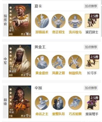 1、阵容搭配1:辛加+夏卡+黄金王