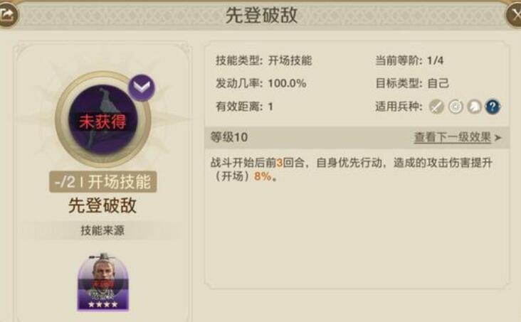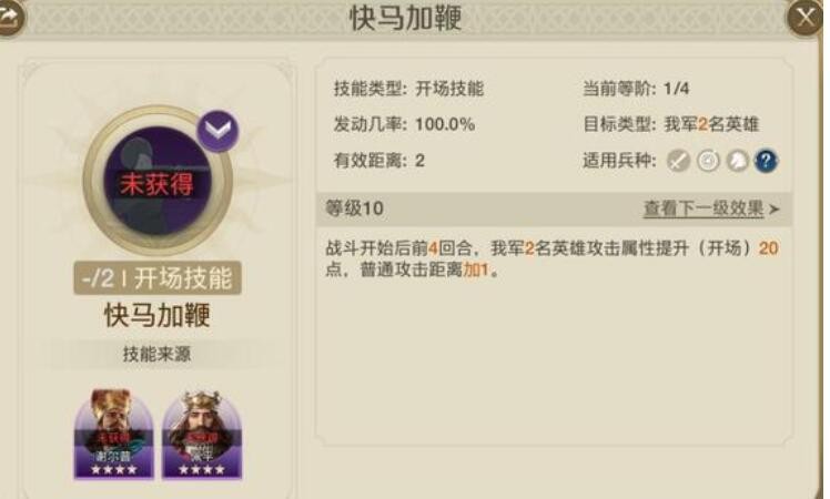 前期推荐携带【快马加鞭】【巨力挥舞】或【先登破敌】这类功能型强的技能。