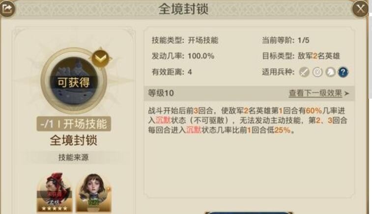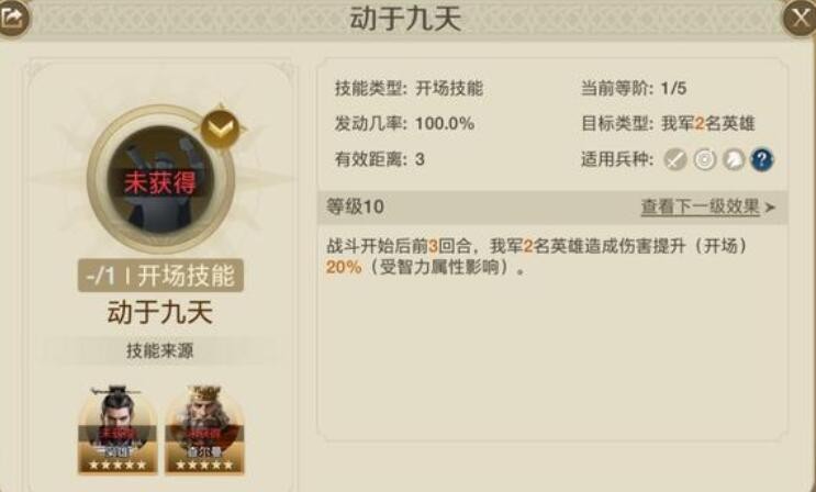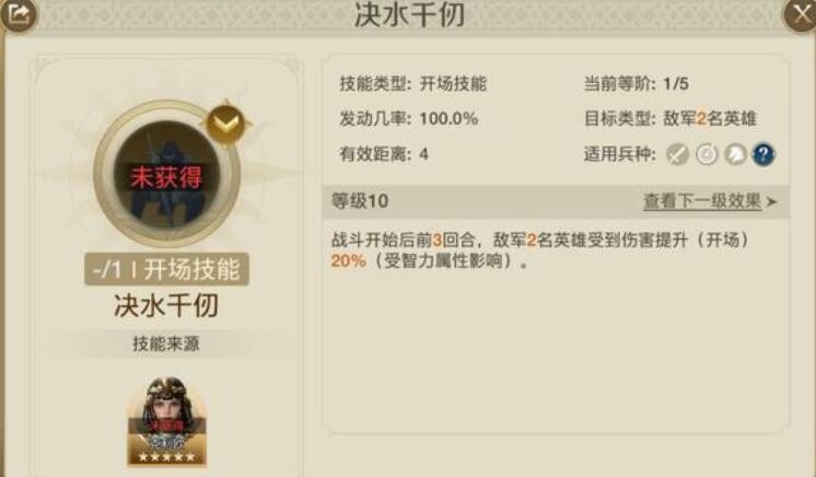 后期换成【动于九天】(群体强力增伤)【决水千仞】(敌方受到伤害加深)或【全境封锁】(前3回合敌方概率进入沉默状态)这种有团队buff效果,或开场控制效果的技能。