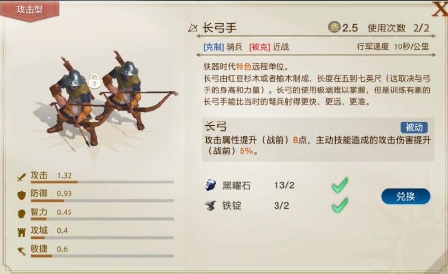 辛加擅长使用远程兵种,攻击距离为3。通常在不同时代搭配防御型或攻击型远程。