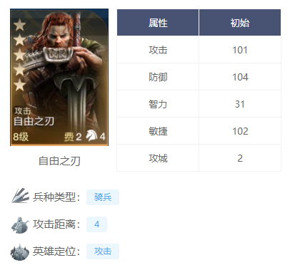 在队伍中是副C的存在,攻击属性也不低,虽然没有自由之刃那样子的高攻击高防御,但是在队伍中负责补充伤害还是非常足够的。