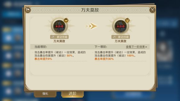 战无不克:准备1回合后对敌军全体造成1次攻击伤害,进阶满级后100%可以再随机对1名敌人造成伤害。都是可以打出非常高伤害的技能,配合自由之刃效果很好。