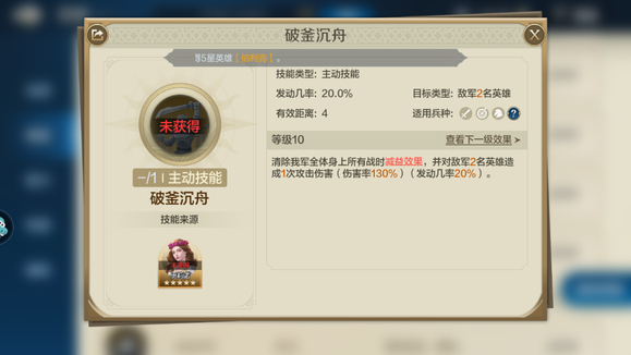 破釜沉舟:清除我军全体身上所有战时减益效果,还可以对敌军2名英雄造成1次攻击伤害
