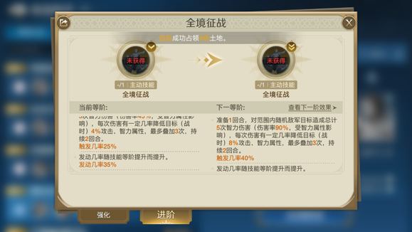 全境征战:这个技能是非常搭配阵容的,准备一回合后可以随机打5次智力伤害,一下子就能触发【长墙工事】,是必带的技能。