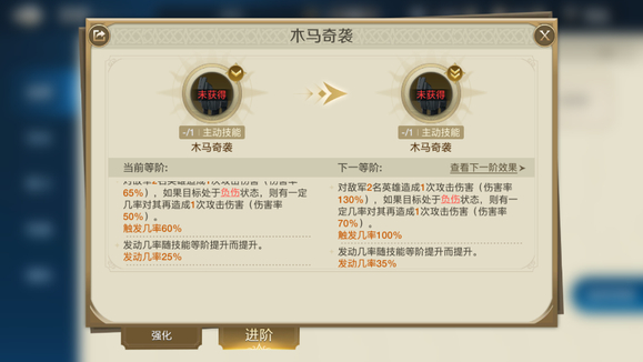 木马奇袭:也是aoe伤害,而且对方处于负伤状态,满级后可以100%再打一次输出,这两个技能组合搭配效果非常猛。