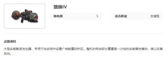 艾塔纪元狼蛛IV武器属性怎么样?这是一次性的武器装备,具体的属性内容已经为大家准备好了,大家可以查看详细的数据,更好的使用此款武器,具体的内容一起来看看吧。